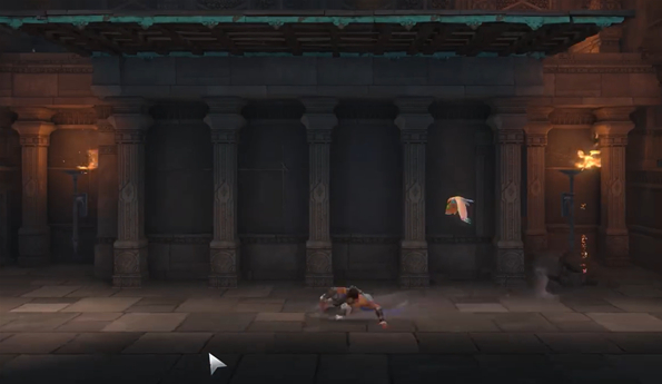 来到左侧房间内,这里注意不要掉下去,就往上跳就行,目标在半空的一个台子上,那个平台很大,是位于房间中上部。