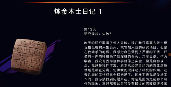 炼金术士日记1的内容还是有点意思的,这名炼金术师挺有胆子,都能用瓦格瓦格树拿来当试验品研究。