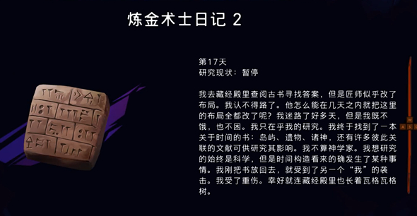 击碎里面的杂物之后,就能看到炼金术士日记3,这个家伙看起来是精神错乱了,都有无数个我了,实在可怜的人啊。