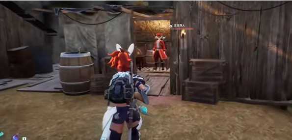 一直往前走会看到红色衣服的商人和他对话是可以购买上很多的材料的。