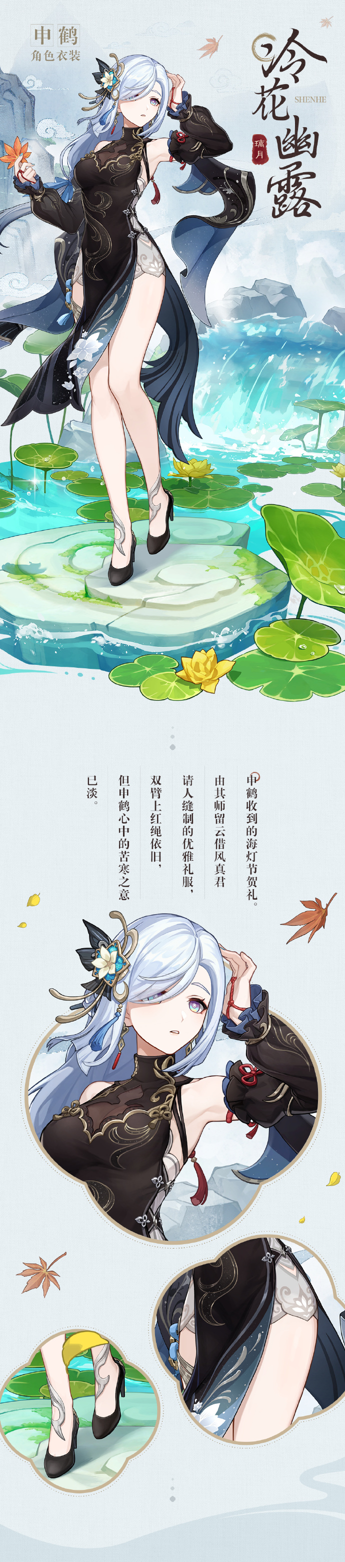 4.4版本更新后,申鹤衣装「冷花幽露」永久上架商城。