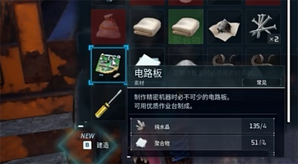 1、游戏中电路板是制造高端电力设施的重要材料,属于高级材料。