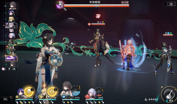 布洛妮娅只有一个特性就是场上有其他敌人存在时,获得弱点保护。无法削减韧性并不是什么很头大的事情,只是单纯看布洛妮娅的机制没必要先集火其他敌人。但布洛妮娅身旁站着的可是金人勾魂使,拥有当下版本最恶心的机制,这下就不得不先杀金人勾魂使了。