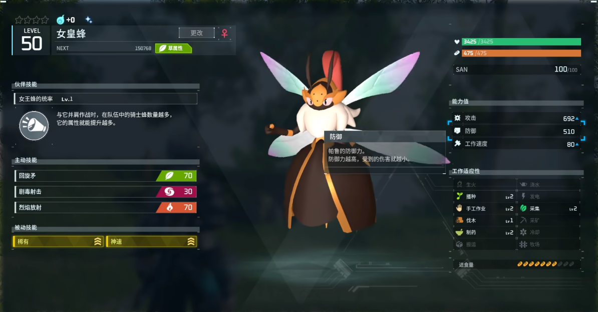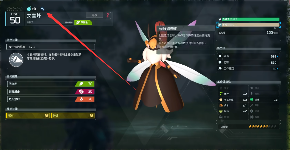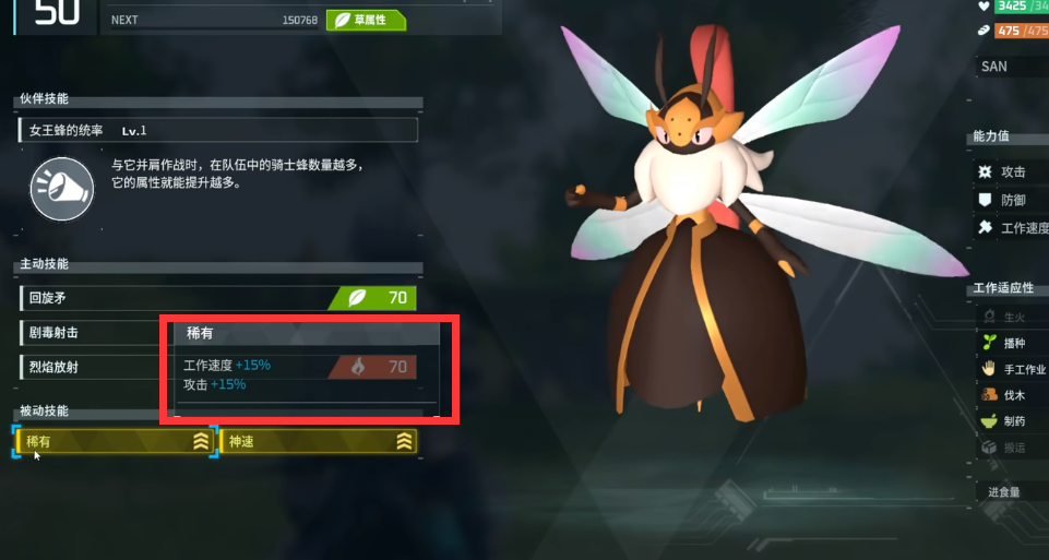 3、闪光帕鲁拥有“稀有”特性,可以额外增加15%攻击力和工作效率,该特性可以通过配种遗传。