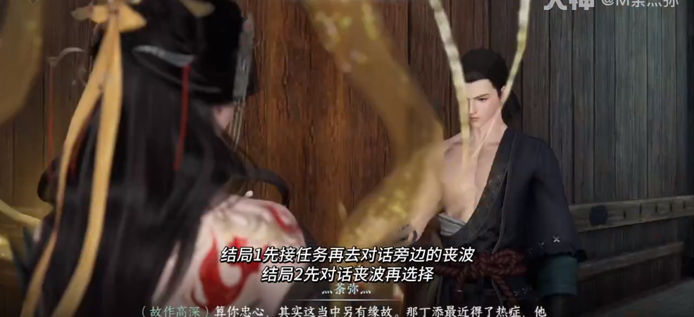 先和旁边的“丧波”对话,然后与丁添对话并选择“我认识他”,之后再和“丧波”对话,最后等传闻更新,到连云寨。1259.1623处对话“丁添”即可。