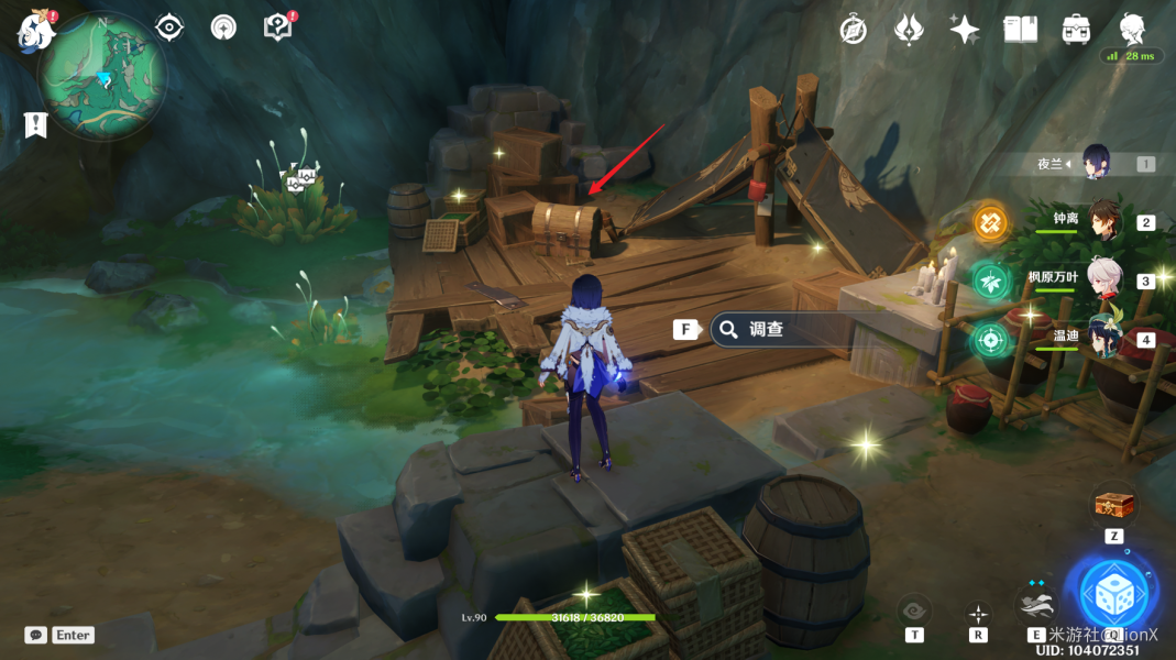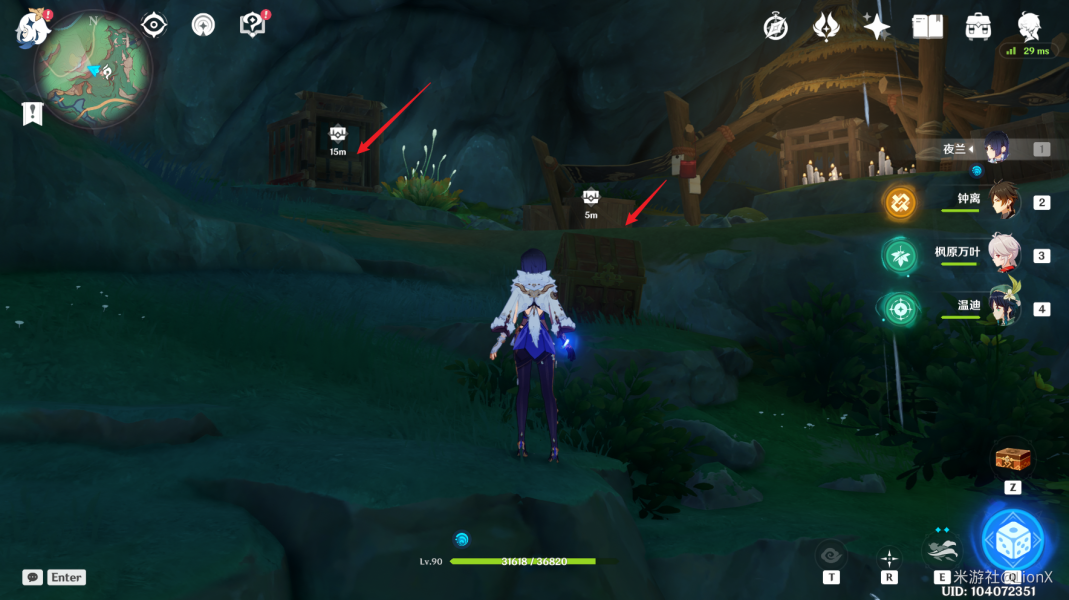 1、首先来到下图中的位置,击败镇守宝箱的遗迹机关。