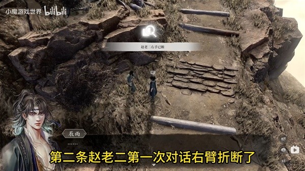 第二条线索——赵老二右手已断:赵老二第一次对话右臂折断了。