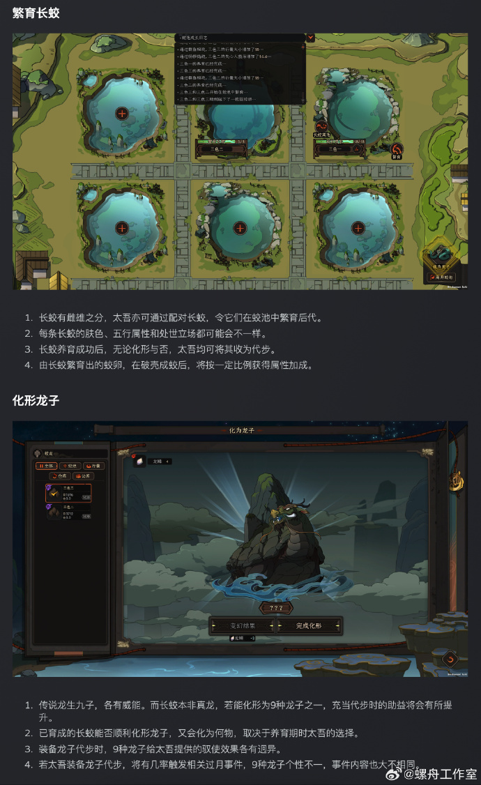 已育成的长蛟可收为代步,陪伴太吾游历大好山河,亦可配对雌雄,繁育后代……