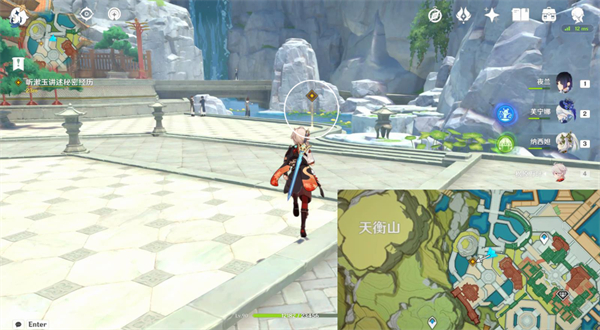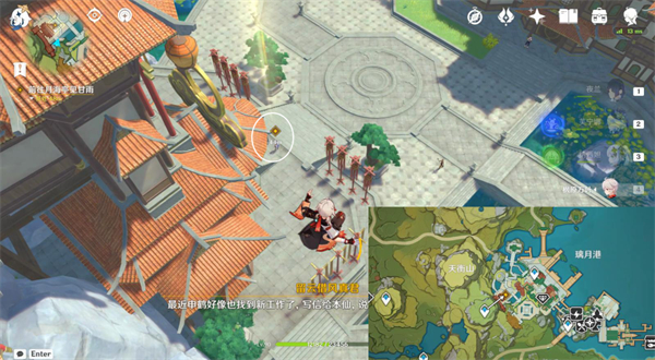 2、完成剧情后,传送天衡山东南锚点,前往月海亭,和甘雨对话。