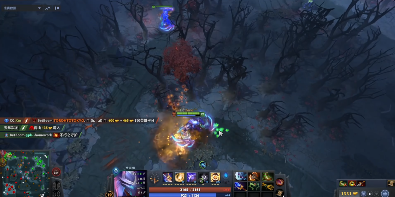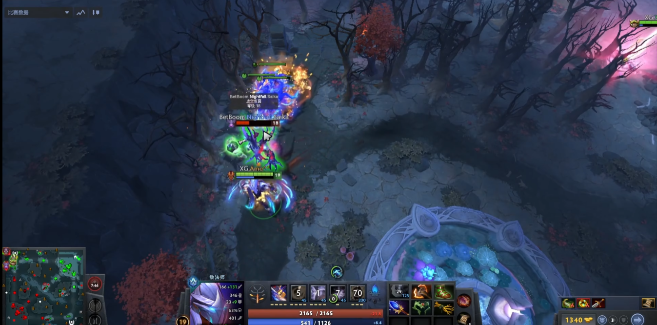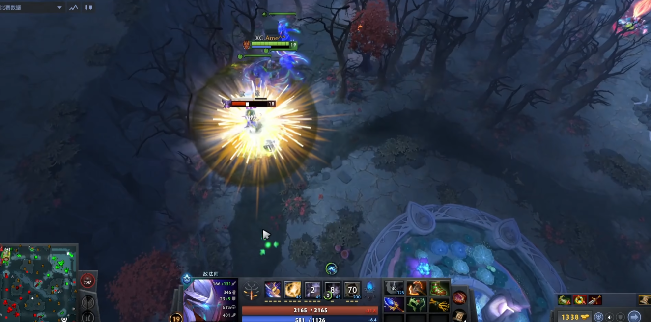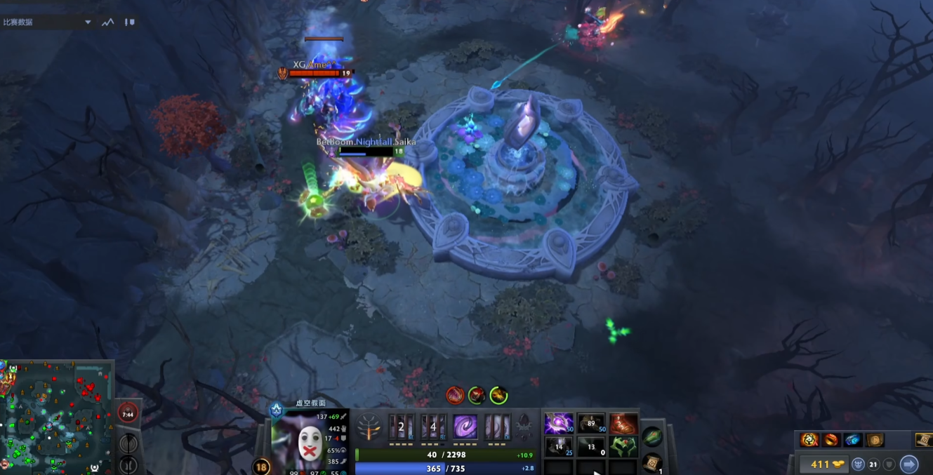 首先这个为什么会这么火就是因为ame使用的敌法技能用的太好了,他显示在虚空回来的路上放了一个分身