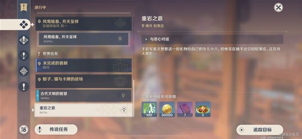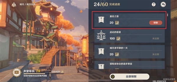 完成重岩之意任务后,旅行者可以前往「璃月总务司」干事·小雨处,获得声望值+20