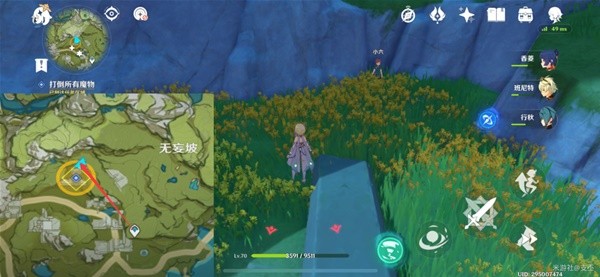 前往指引的地方,来到遗迹草丛处,出现丘丘人,击败它们,再跟小六对话