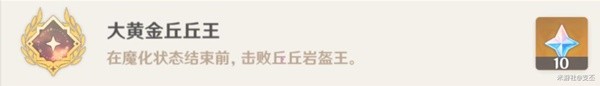 在丘丘岩铠王魔化状态(即护盾状态)下,击败它,会获得成就——大黄金丘丘王(10原石)