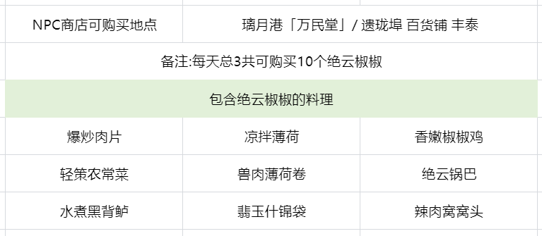 当前版本仅有2位NPC有出售绝云椒椒