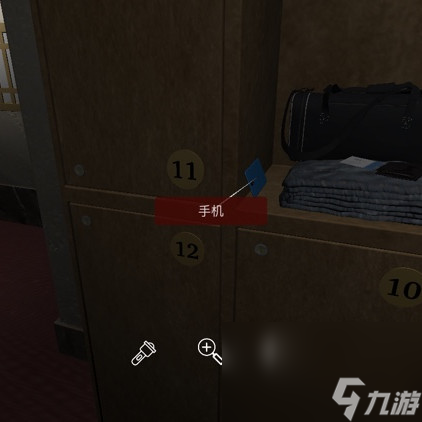 手机这个线索位于男汤的9号更衣柜里面,需要使用手环1打开。