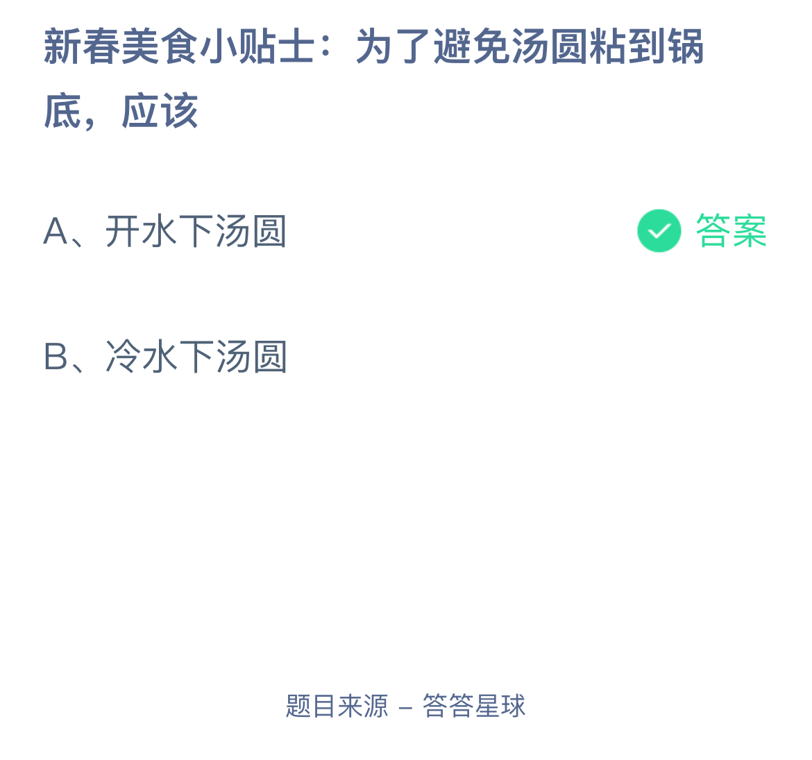 解析:煮汤圆时,我们通常会选择用热水下锅,而不是冷水。这是因为冷水下锅会使汤圆内部的糯米皮变硬,影响汤圆的口感。而热水下锅,则可以使汤圆内部的糯米皮逐渐凝固,从而保持汤圆的完整性。