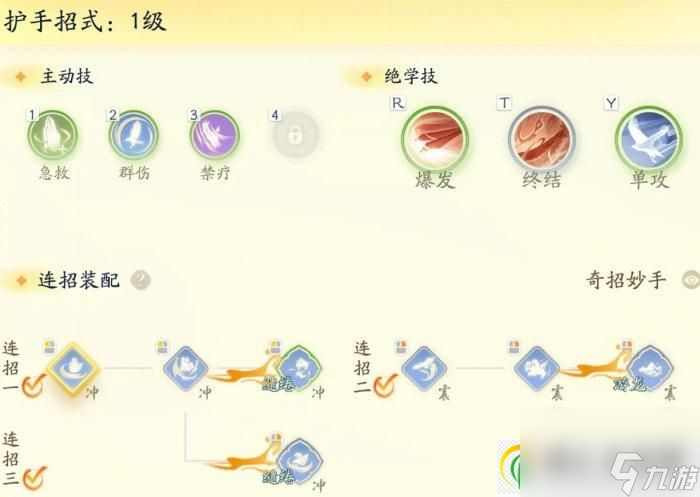 可以佩戴3个大招(绝学技)4个小技能*2(主动技)2套小连招*2(普通攻击)这三个就是主要的攻击方式,绝学技需要我们通过战斗时积累“真气值”来释放,兵器我们可以理解为选择职业,因为所有的武学招式都是由兵器延伸出来的,只有佩戴对应的兵器才能使用技能,选择好兵器后,就可以自由的来搭配兵器对应技能,无论是想治疗还是打伤害,只要佩戴对应技能这里都可以满足你。
