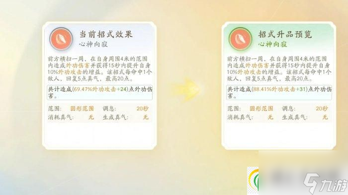 我们还可以利用多余的“技能书”或者“秘传卷轴”来对使用武学进行“升品”增加威力