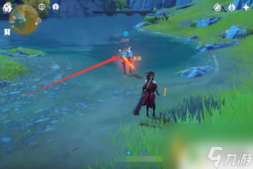 4.如图所示点击【鼠标左键】进行普通攻击把火铳游击兵往水里面推