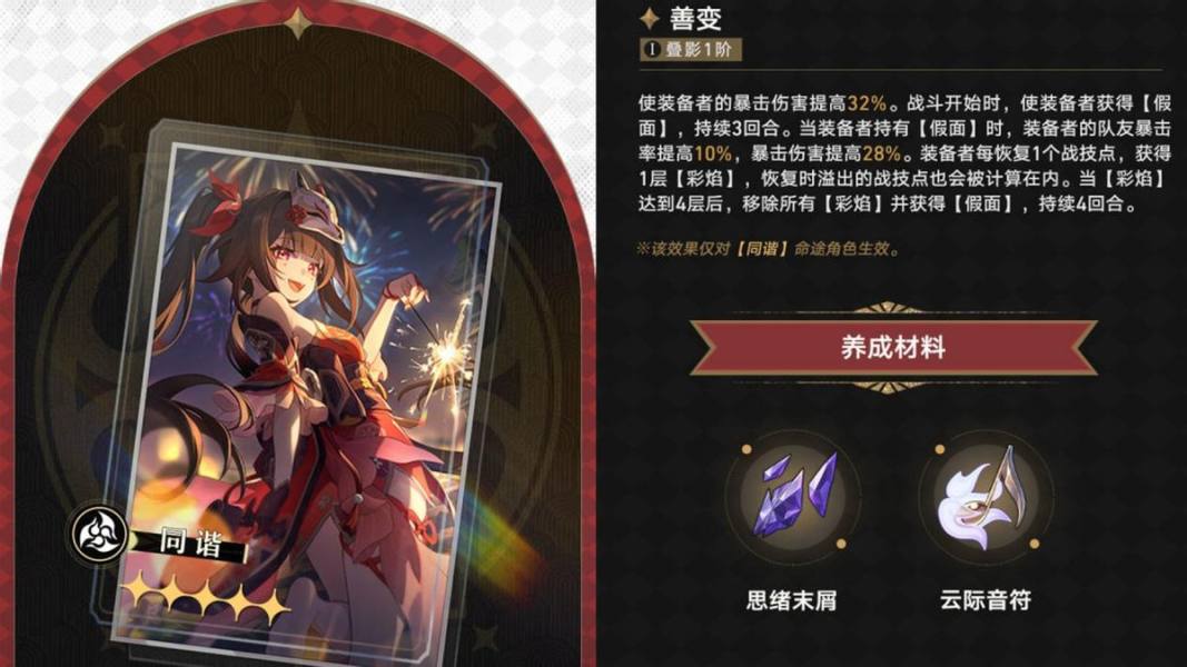 光锥佩戴者初始拥有持续3回合的【假面】效果,即为上述全队双暴增益,重点在于第2次【假面】效果获取难度。