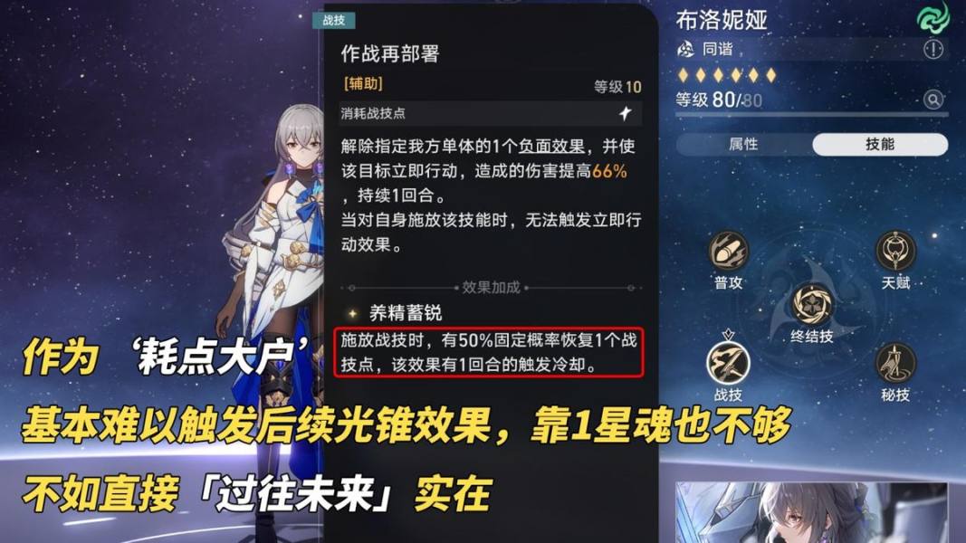 花火终结技可以一次性恢复4个战技点,吃满是非常轻松的!若星琼紧张花火也有其他光锥替代,单C队伍考虑「过往未来」增伤、多C/0T队伍考虑「舞!舞!舞!」拉条、量子银河战舰可用「与行星相会」增伤。