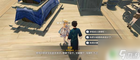 第一环任务需要我们去到港口区域去寻找小安了解船只的记录表格整理情况。在本次任务中我们会发现对话的小安身上会提示人物的心情,我们需要尽可能维护心情不等降过一半以下。这样才能保证任务的正常进行。