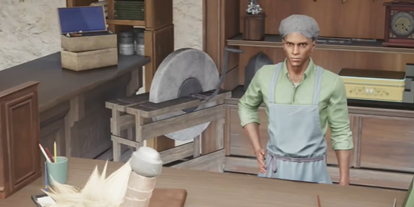 1、首先我们要抵达卡姆市区武器店,找武器店老板购买。