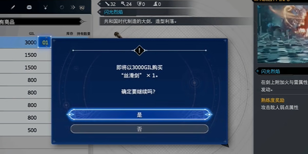 2、我们需要花费3000GIL即可购买到丝滑剑。