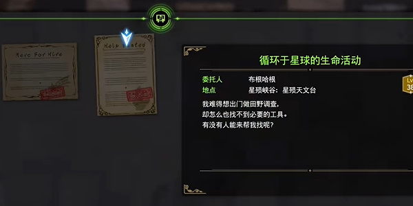2、抵达目的地后我们在布告栏接取委托,并传送至星殒天文台前往委托人地点。