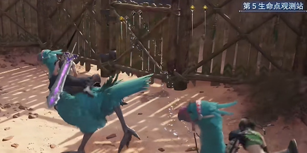 7、第五处地点位置:抵达图中位置,向左边上去来打第14陆行鸟滑翔场,打败在第五处里面的boss即可。