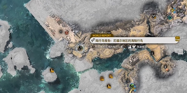 4、汇报任务给NPC过后,前往海边收集陆行岛草。收集30个分布在海面上空的陆行鸟草。