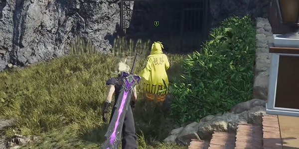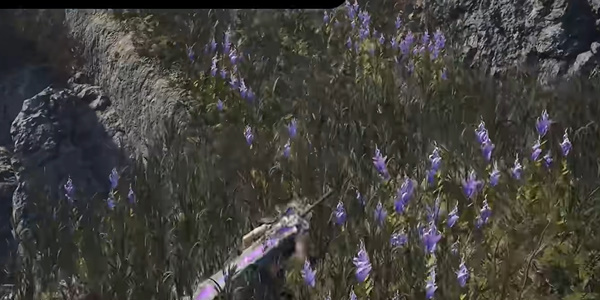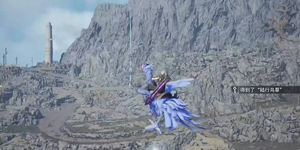 3、然后我们前往任务地点,捕捉陆行鸟。这里需要往右边的坡上走,捡起地上的蔬菜,引诱蓝色陆行鸟至附近草丛捕捉即可。