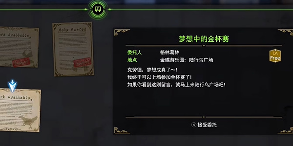 2、抵达标记点后我们在布告栏接取委托,并前往金碟游乐园。