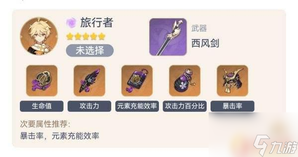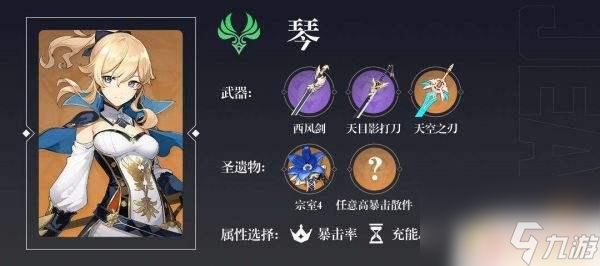 3、一般来说琴的治疗量是足够的,不需要刻意堆攻击。而且E的CD非常短,所以选择任意一套暴击率较高的圣遗物配合【西风剑】提供额外的回能是不错的选择。