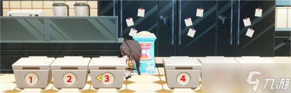 房间的形状,从左到右依次为数字1/6/4,按顺序与厨房中对应食材箱交互,完成任务。