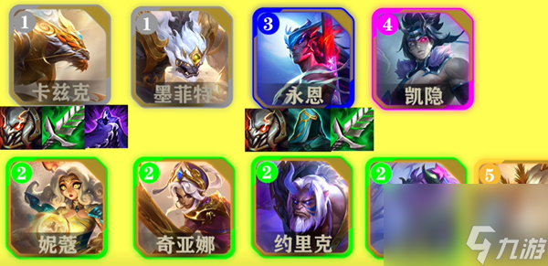 3、先七人口,把永恩D到三星再拉人口,海克斯优先选吸血战力,天将或死神纹章必拿。