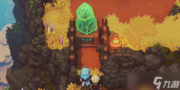 4、过去之后继续向左,然后我们就会遇见一个绿色水晶,推动水晶的方法为:上、右、上。在推玩之后就会触发机关。