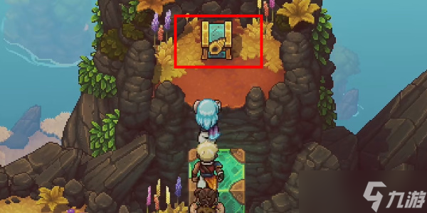 5、我们录用新的水晶柱作为垫脚的爬到上面去便可以开启宝箱了。