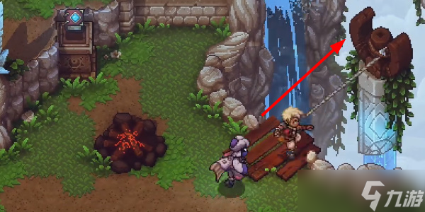 1、首先玩家先来到游戏中天空岛内的风元素天空岛区域的位置处,具体位置是在保存点的篝火旁边。(如图所示)