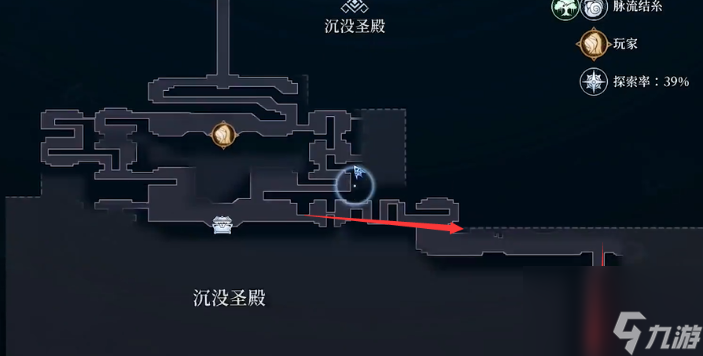 1、首先玩家根据下图箭头前往水晶之城的沉没神殿中位置。