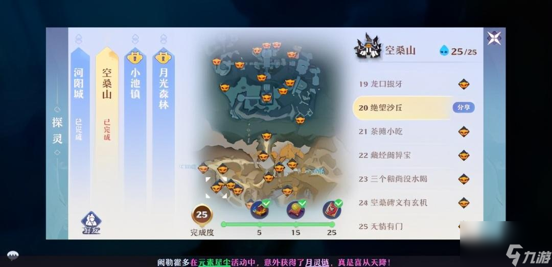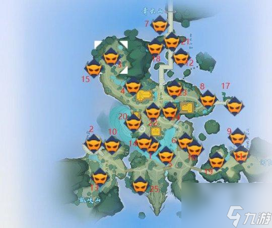详细的根据标注好的地图点,打开小地图,按照数字对应的地点,赶紧过去找齐25个探灵吧!