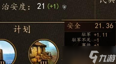 驻军的数目影响治安度,数目越多治安度越高,但相对的食物消耗也多,所以要找到一个动态的平衡,这里个人推荐150人左右。
