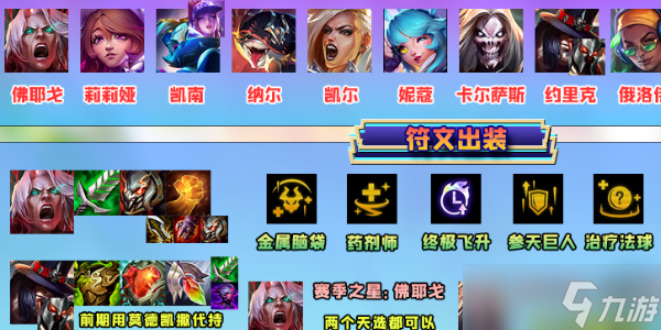 该阵容主要由佛耶戈、死歌、阿卡丽、约里克等角色组成,在新版本中佛耶戈和死歌双双获得了加强,裁决使的加强让死歌和阿卡丽再度崛起。