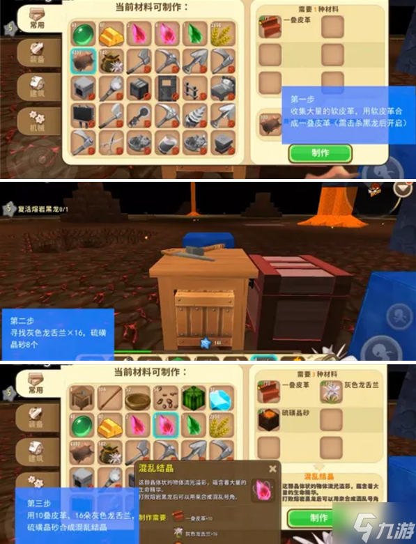3、使用[一叠皮革*10、灰色龙舌兰*16、硫磺晶砂*8]合成获得混乱结晶。