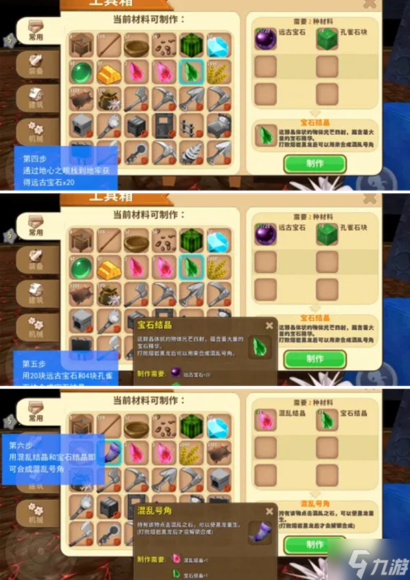 即可使用[混乱结晶*1+宝石结晶*1]来合成获得【混乱号角】。