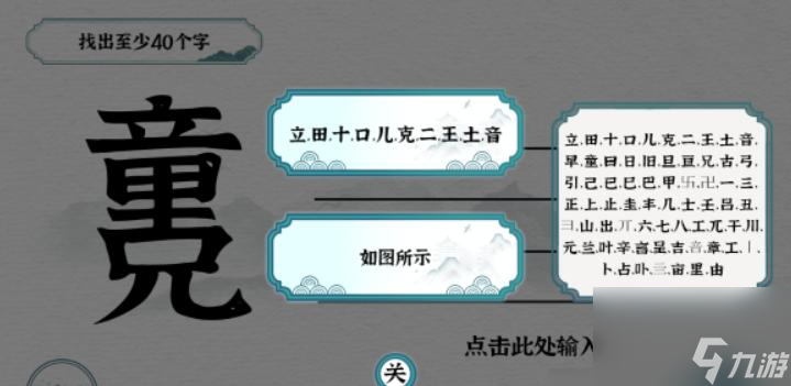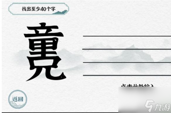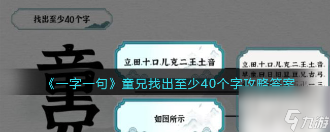 《离谱的汉字》 《一字一句》 《文字进化》 《文字的奥妙》 《一字一句》童兄找出至少40个字攻略答案1、与前面的关卡一样,给出的文字比较少。这次【董】与【兄】连在一起的,目前大概能够拆分出:立、里、田、土、口、儿、兄等字。然后我们可以旋转下视角在继续拆分。