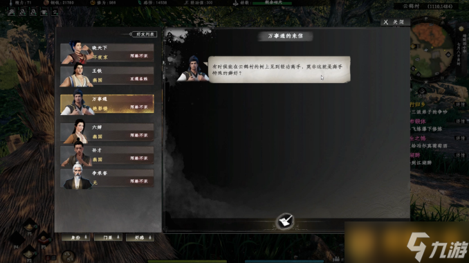 1、花铜钱在云鹤村NPC万事通(1112,1481),询问村里轻功的相关传闻。