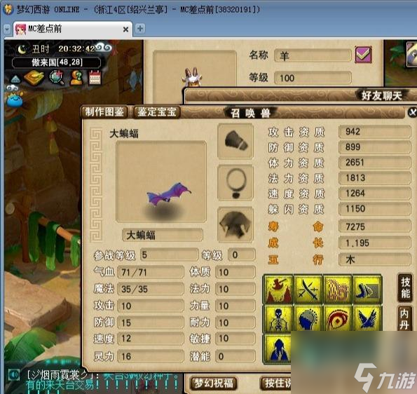 9技能野生力劈大蝙蝠,攻资真的是有点低,先打吧,看能打成什么样,实在不行最后打坏了卖给平民玩家打蓝书玩也不错的。