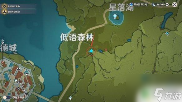 位于星落湖右下的半山腰,可按图所示传送到雷本“仲夏庭院”再一路向西。跳下来即到。
