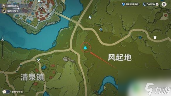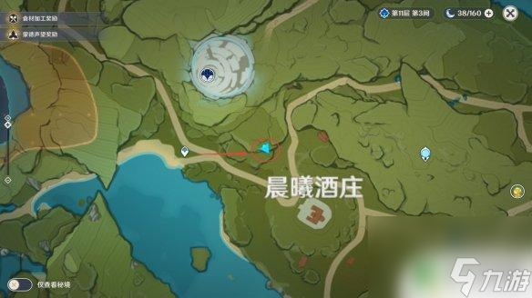 位于大地图“晨曦酒庄”的“晨”字正上方,山坡上。